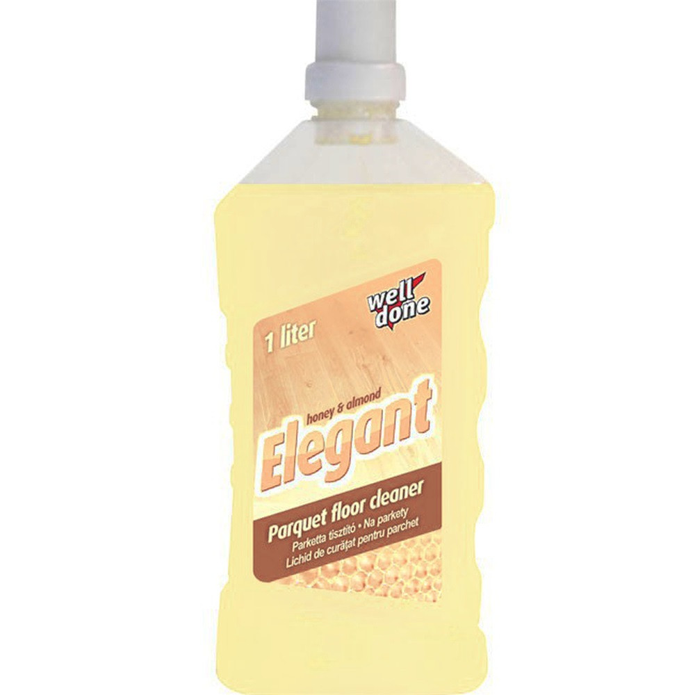 Well Done Elegant padlótisztítószer parkettához könnyen és hatékonyan távolítja el a szennyeződéseket, méhviasz tartalma ápolja a parketta felületet. Foltmentesen szárad,