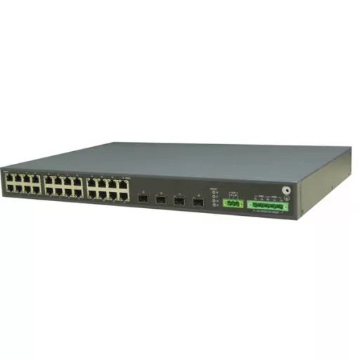 RAISECOM L2 menedzselhető ipari switch, 19"RM, 4x100/1000 SFP + 24xGE RJ45 + 1 alarm,  2xDC