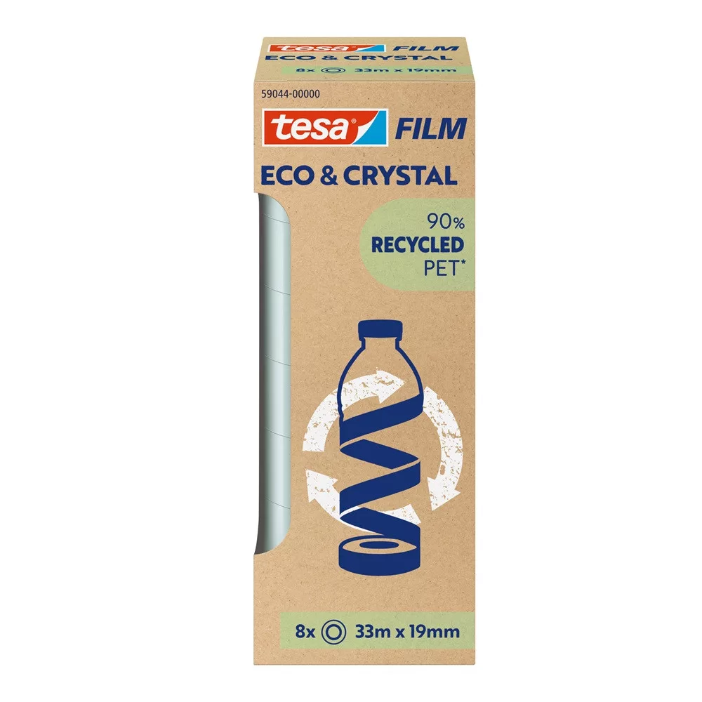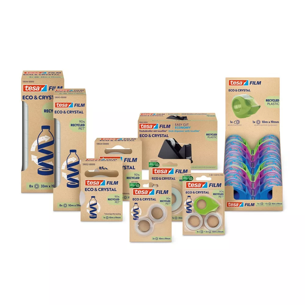 Bemutatjuk a tesafilm® Eco & Crystal szalagot, amely a klasszikus tesafilm® jól ismert tulajdonságait ötvözi a környezetbarát jellemzőkkel. Rendkívül átlátszó, sokoldalú, erős, oldószermentes ragasztóval, és 90%-ban PET-palackok újrahasznosításából származó műanyagból készült hordozóanyaggal. Ezenkívül a tekercs magja 100%-ban újrahasznosított műanyagból készül, és csendesen letekerhető. Az összes tesafilm® szalagadagolóval kompatibilis.