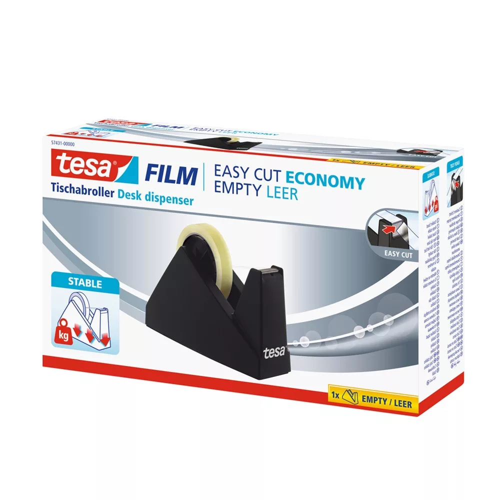 tesa® Easy Cut Economy asztali csomagolószalag vagy ragasztószalag adagoló ötvözi a klasszikus kialakítást és a bevált funkcionalitást Katalóguskód: 34338