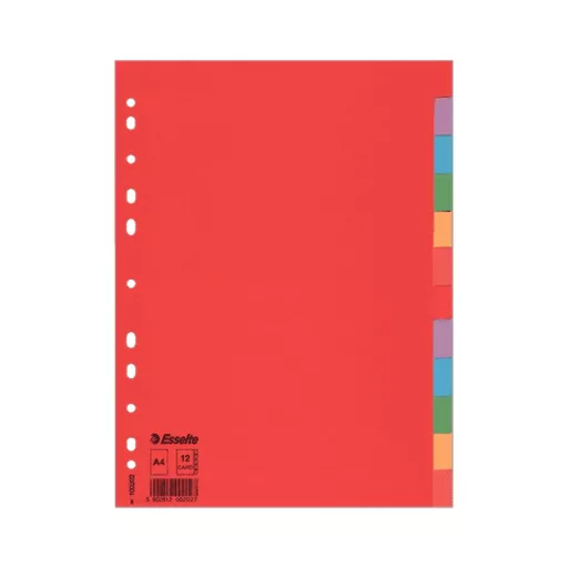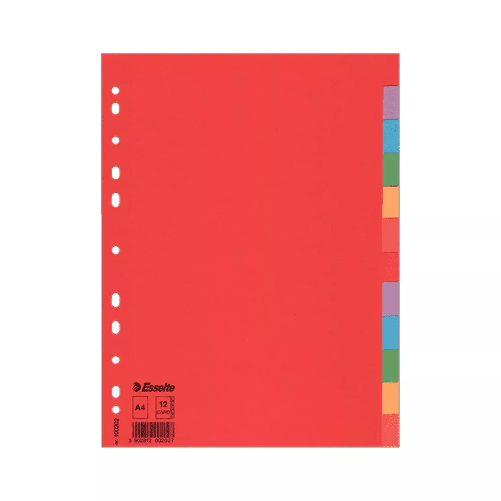 Tartós elválasztólap élénk színkombinációkban. Újrahasznosított karton alapanyag. 12 színes fül a könnyű rendszerezéshez Hagyományos, 11-lyukú lefűzőrész A4 formátum Erős, 160 g-os karton alapanyag Blue Angel minősített, újrahasznosított karton alapanyag Blue Angel minősített, újrahasznosított karton alapanyag Katalóguskód: 35869