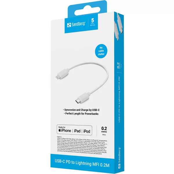 SANDBERG USB-C PD to Lightning MFI 0.2M