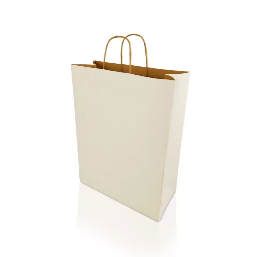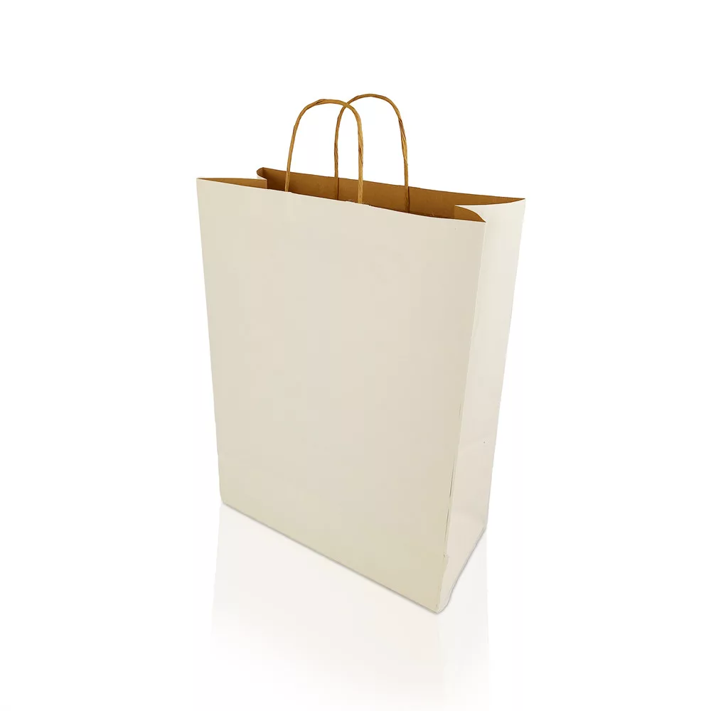 Sodrottfüles papírtáska 320x420mm 150mm talp L méret 200 db/doboz, fehér