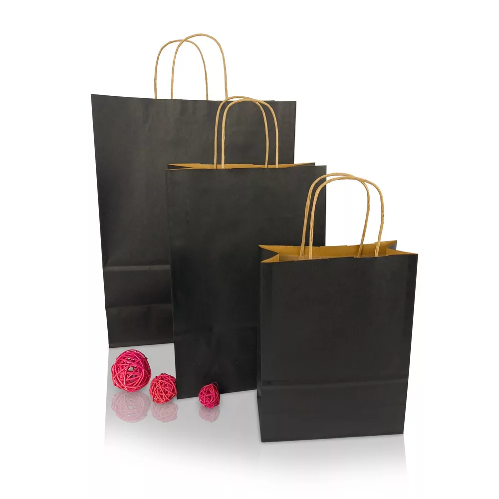 Sodrottfüles papírtáska 320x420mm 150mm talp L méret 200 db/doboz, fekete