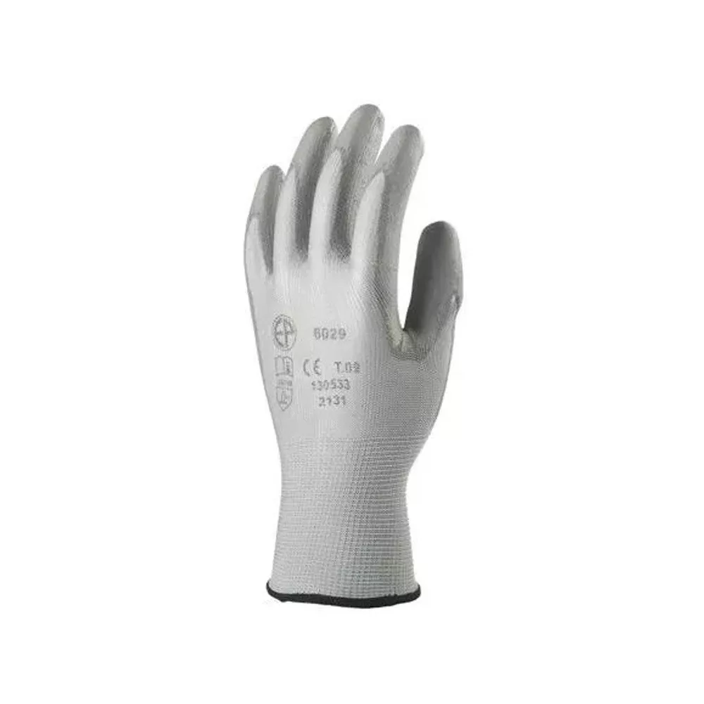 Poliészter szerelőkesztyű PUtenyérmártással • Alapanyag: poliészter • Tűfinomság: 13 • Szürke PU tenyérmártás • Szín: szürke EN 388:2016 Rendelési egység: 12 pár/cs Katalóguskód: 43720