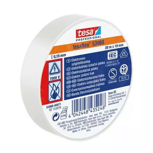 Az 53988 elektromos szigetelőszalag megbízható segítséget nyújt villanyszerelőknek, szerelőknek vagy más ezermestereknek. Vastag alapanyag, magasfokú rugalmasság és nagyon magas ragaszóerő jellemzi (még acélon illetve alacsony hőmérsékleten is). Ez a PVC szigetelőszalag nem csak szigetelésre és vezetékek megjelölésére alkalmas, de szereléshez és kötegeléshez is. Mivel rengeteg színben elérhető (piros, kék, fekete, fehér és zöld-sárga), jelölőszalagként is használható. A tesaflex® 53988 minden fontos tanúsítvánnyal rendelkezik és könnyen használható. Katalóguskód: 34312