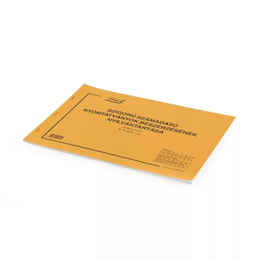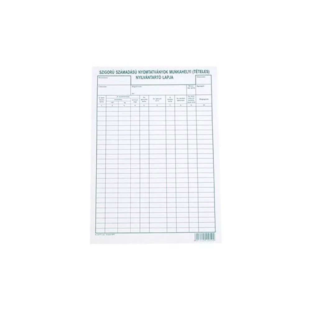 Szigorú számadású nyomtatványok nyilvántartása, A/4, fekvő, karton. Katalóguskód: 1870
