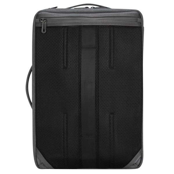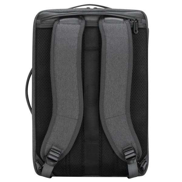 | Built to fit 15.6” laptops, this eco-friendly bag’s unique design lets you carry it as either a backpack or briefcase, with shoulder straps that can tuck away when not in use. Other features include a dedicated padded compartment to cradle your laptop, two main compartments with pockets to organise your files and everyday essentials, ergonomic shoulder straps to make your commute more comfortable, and a trolley strap to attach the convertible backpack to rolling luggage. |