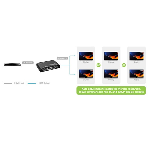 TECHLY HDMI splitter, 1 in 2 out, 30 méter, 4K Ultra HD, HDMI 2.0