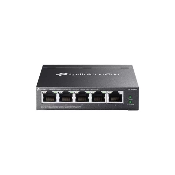 TP-LINK Switch 5x1000Mbps (1xPOE + 4xPOE+) Fémházas Easy Smart (Omada), ES205GP