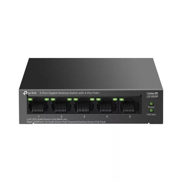 TP-LINK Switch 5x1000Mbps (4xPOE+) Fémházas Asztali, LS105GP