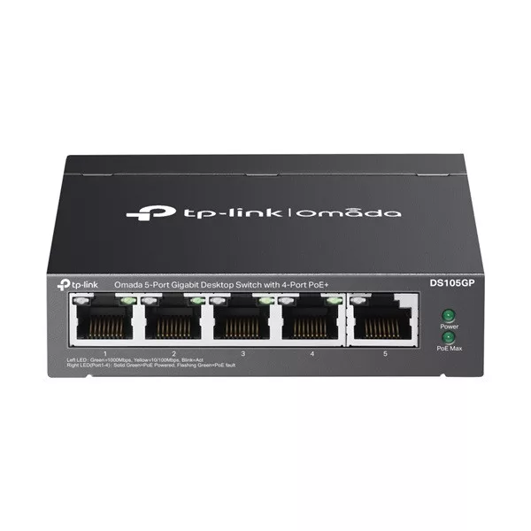 TP-LINK Switch 5x1000Mbps(4xPOE) Fémházas (Omada), DS105GP
