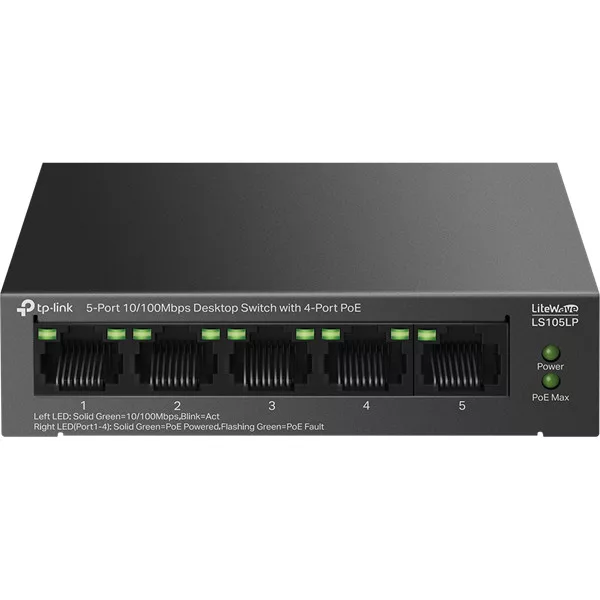 TP-LINK Switch 5x100Mbps (4xPOE) Fémházas Asztali, LS105LP