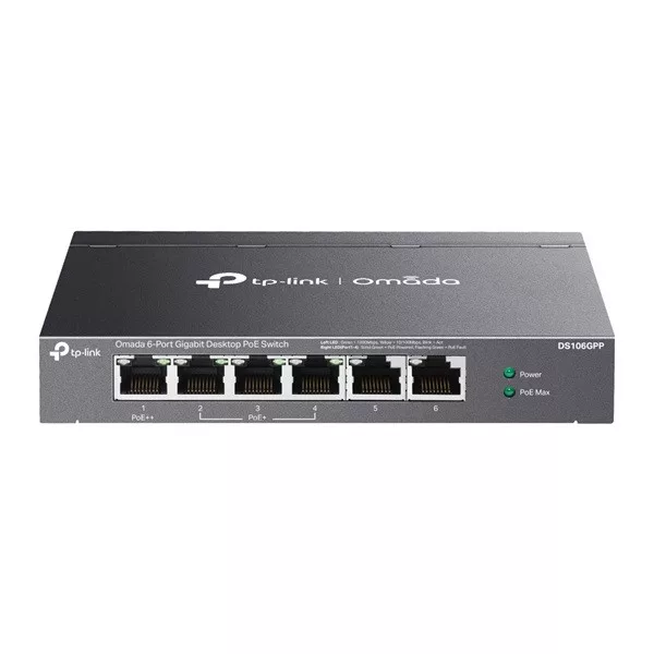 TP-LINK Switch 6x1000Mbps(3xPOE+/1xPOE++) Fémházas (Omada), DS106GPP