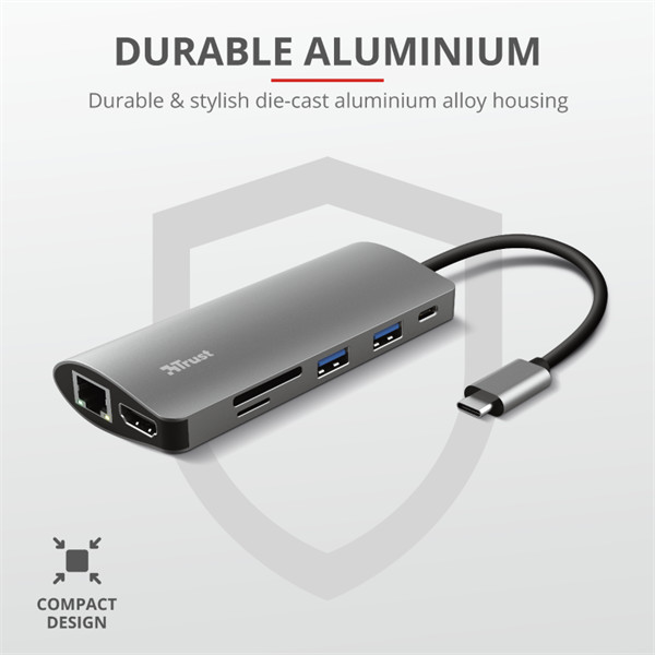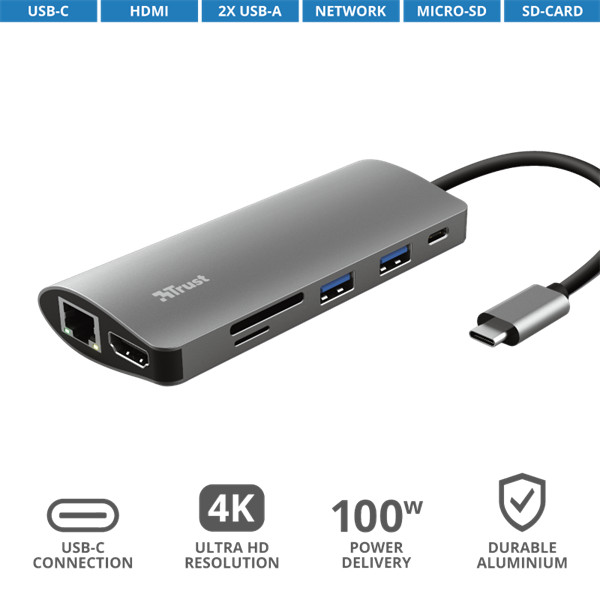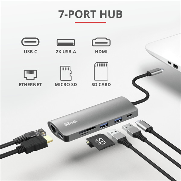 TRUST Hétfunkciós USB-C többportos adapter 23775 (Dalyx 7-in-1 USB-C Multiport Adapter)
