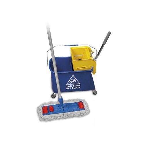 Takarítókocsi műanyag - osztott vödörrel - 20 literes űrtartalommal - 40 cm-es mopvázzal, huzattal - nyéllelKatalóguskód: 46910
