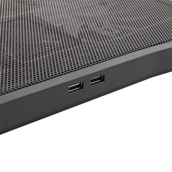 ICE WARRIOR - laptop cooling pad, your companion for 17.3'' laptops. Unleash power with a 1500 RPM fan whispering at 21 dB. Stay connected with the USB hub. Crafted from robust ABS and PC plastic with a metal mesh, weighing 867g. A duo of 125mm and 70mm fans blend prowess with style. With 5 adjustable angles and a sleek black design, conquer heat in style. Elevate your laptop battles!