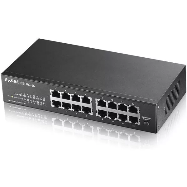 ZYXEL Switch 16x1000Mbps Fémházas Rackes, GS1100-16-EU0103F