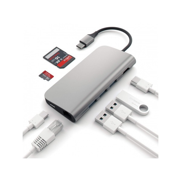 Satechi Aluminium Type-C Multi-Port Adapter (HDMI 4K,3x USB 3.0,MicroSD,Ethernet) - Space Grey